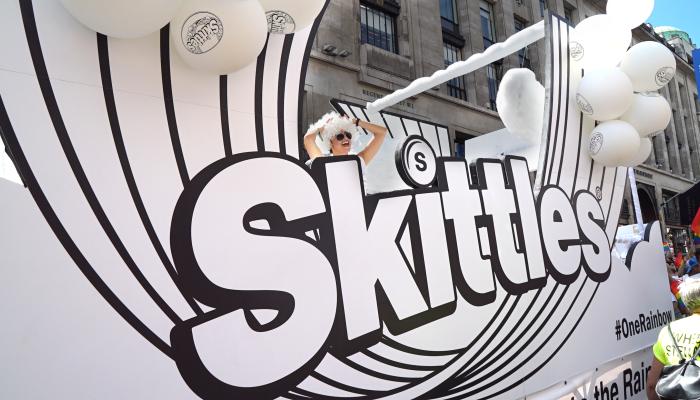 Skittles has once again gone rainbow-free to celebrate Pride, turning its branding black and white to raise money for LGBT+ helpline Switchboard