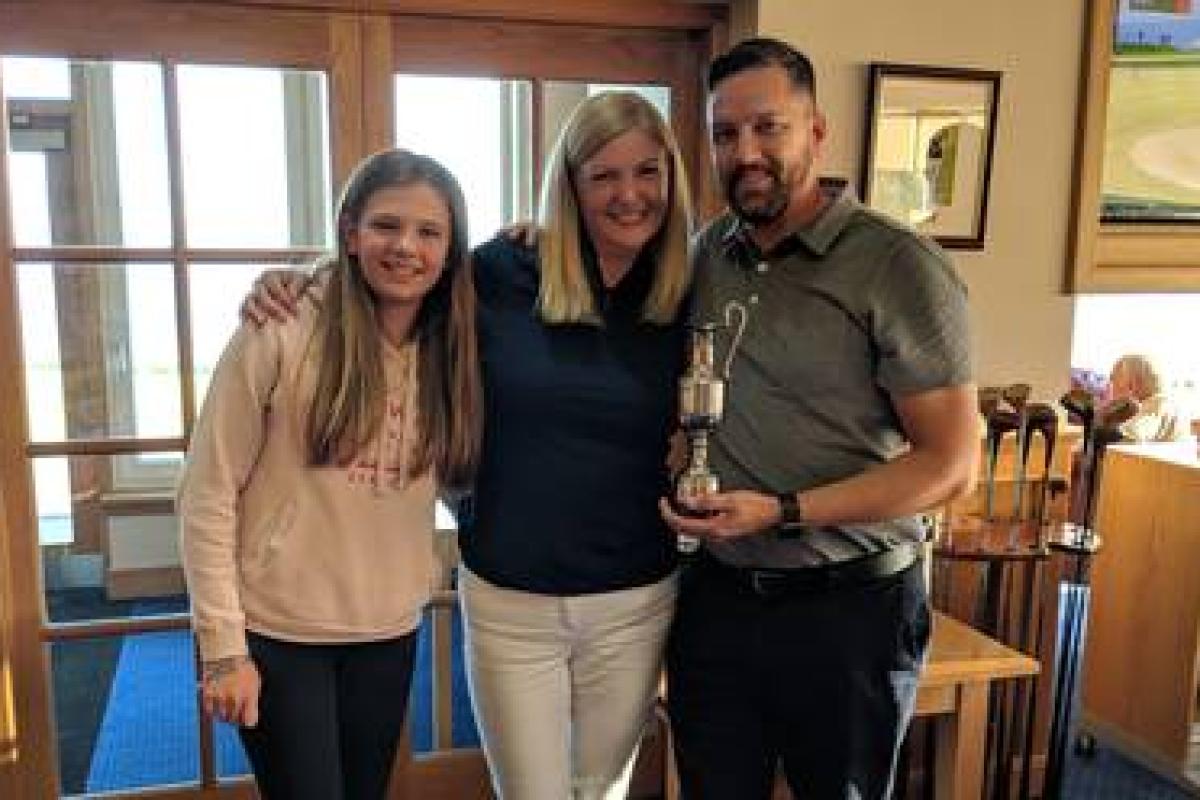 As the golfers made their way back to the clubhouse in the evening sunshine, scorecards were totted up to see who would be crowned the first ever champion of the Kyle Hardie Open, taking home the Claret Jug (and bottle of claret to enjoy with it of course). It became clear that one group had produced two strong performances with a pair of golfers scoring 38 points (2 shots better than their playing handicaps). As the tension built and Alison and Ailsa waited patiently to award the Claret Jug, a count-back was taking place to determine the winner.