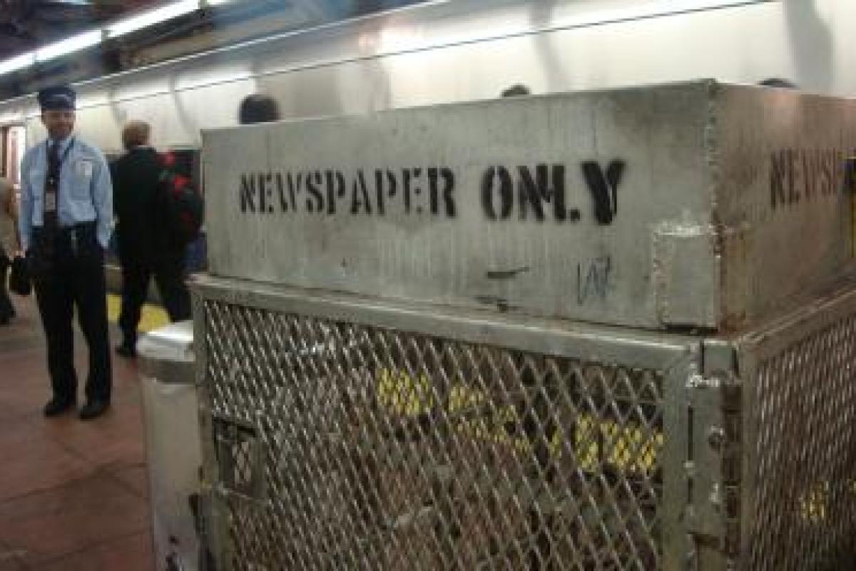 Media, though, feels different. In Grand Central there are tall metal cages at the exit from each rail car, designed to collect already read newspapers. It's actually against the law to remove a paper (if you could, the sides are too high) and read it.